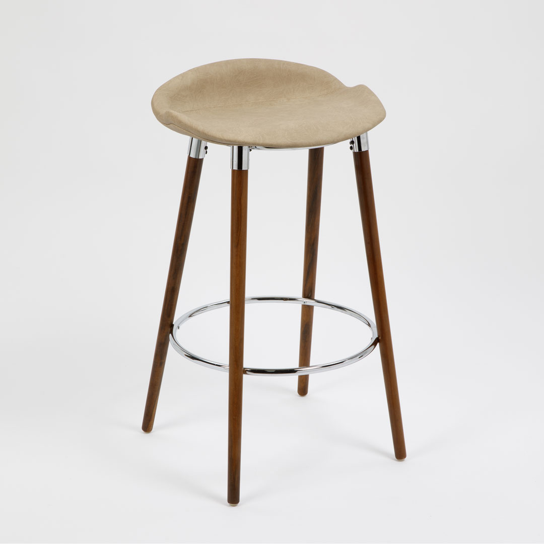 Práctico y versátil, sin respaldo para ocupar menos espacio y acercarse cómodamente a la barra. Disponible en distintas alturas y estilos de base.